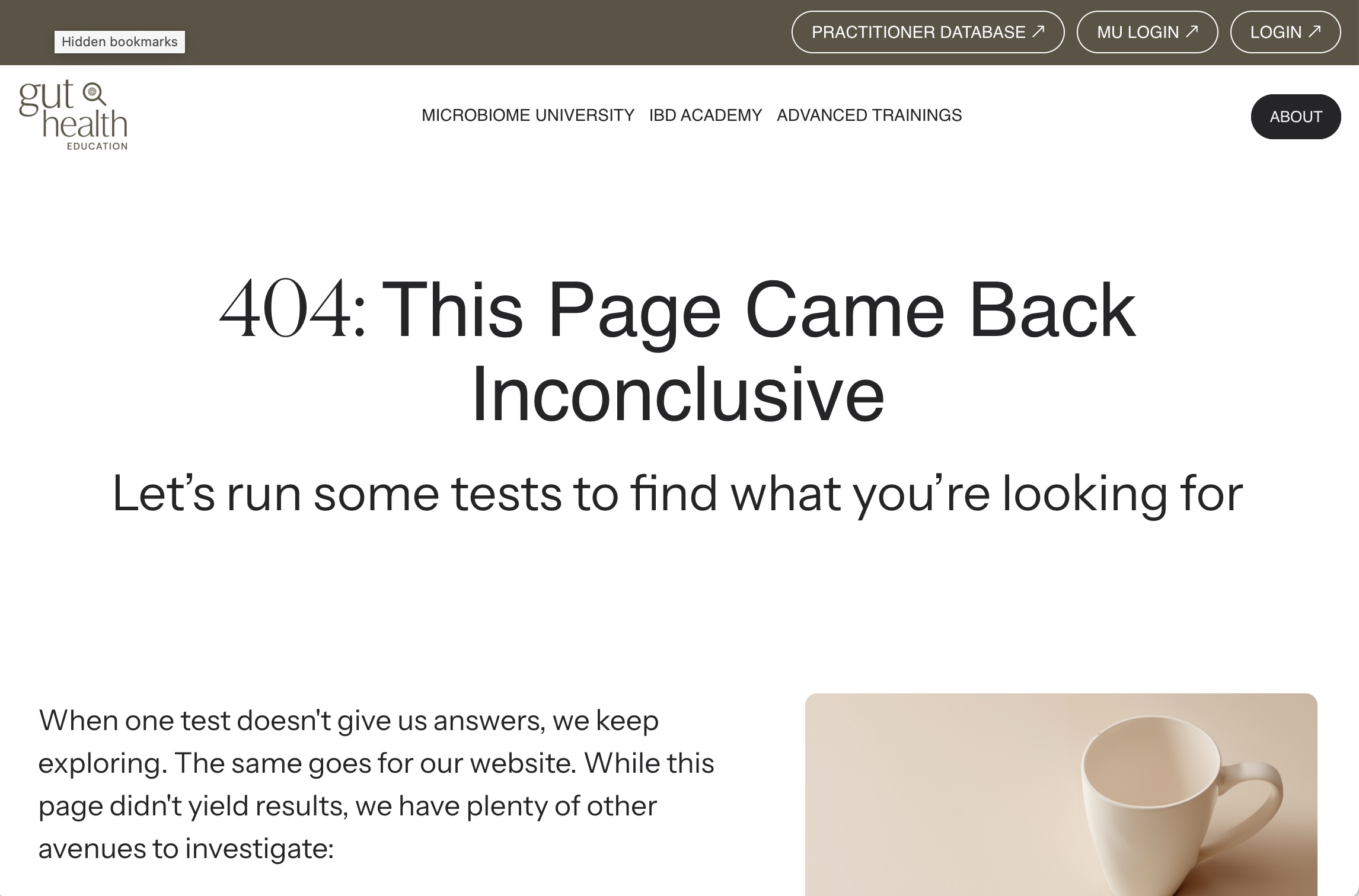 1. Gut Health Education – “404: This Page Came Back Inconclusive”