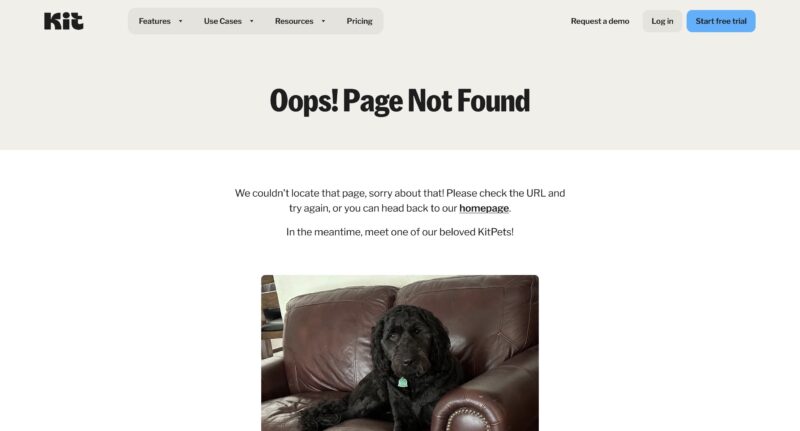 3. Kit – “Oops! Page Not Found (But Here’s a Dog)”