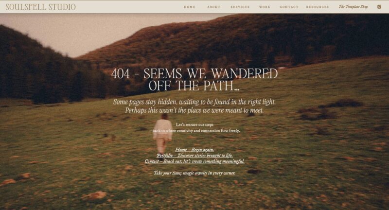 Why it works: It transforms a broken link into a brand-aligned experience that feels intentional, atmospheric, and deeply creative. Even a mistake feels magical here.