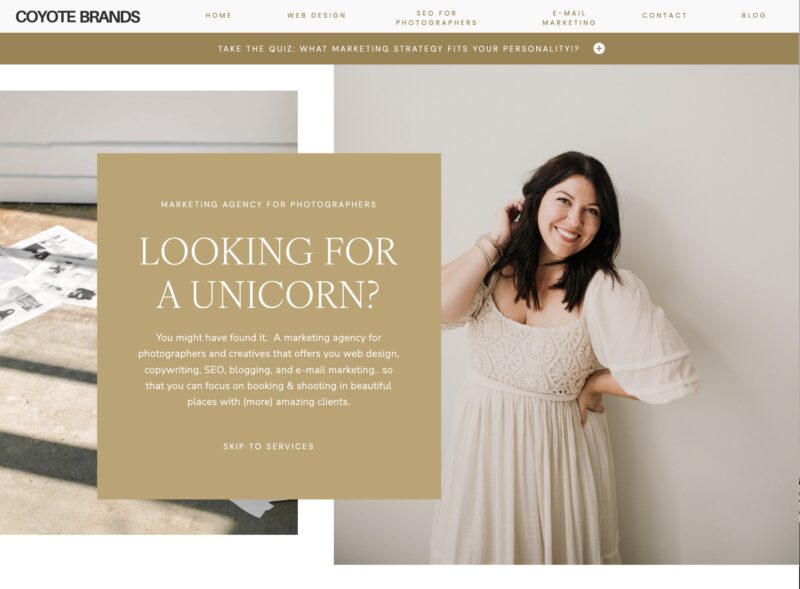 After over a decade of photography, I found myself working more on my own website than anything else in my business and fell in love with design. I went on to work for close friends and then eventually launched Coyote Brands to grow my web design business!