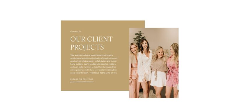 I’ve worked on countless photography websites and I love going through their galleries to choose the best images for each page. Other industries I have worked with and enjoyed are custom home builders, a cattle ranch, and recently gave an old outdated pharmacy website a major facelift and even though photographers have my heart, I love getting the chance to work with other industries and shake things up.