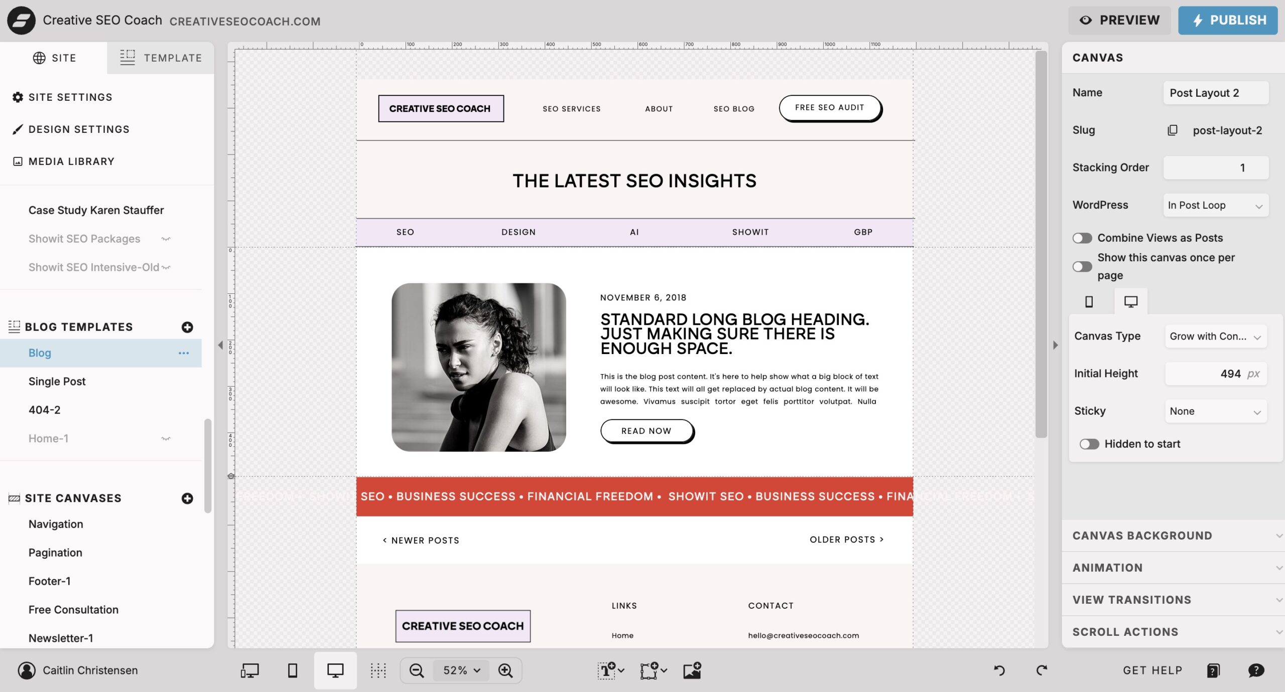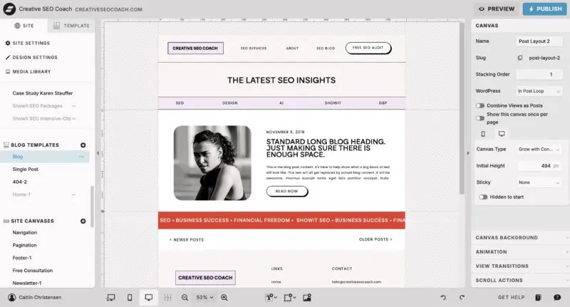 One of the coolest things about using Showit is that you don’t have to settle for a cookie-cutter blog layout. You design it—just like the rest of your site—using the same drag-and-drop builder.