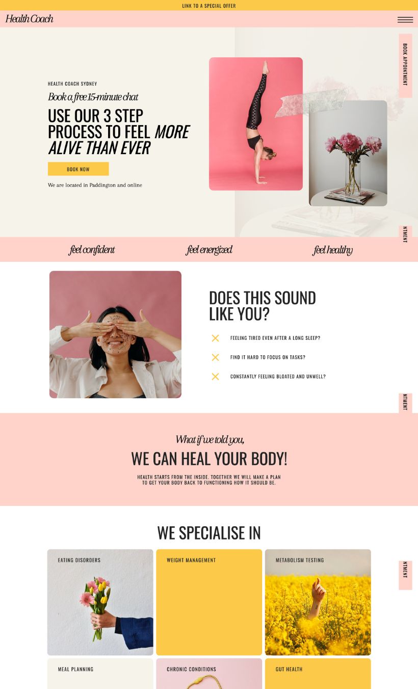 Ready to inspire, motivate, and transform lives? This bold and modern website template is perfect for health coaches, nutritionists, and wellness professionals who want to attract clients, showcase their expertise, and book consultations with ease.