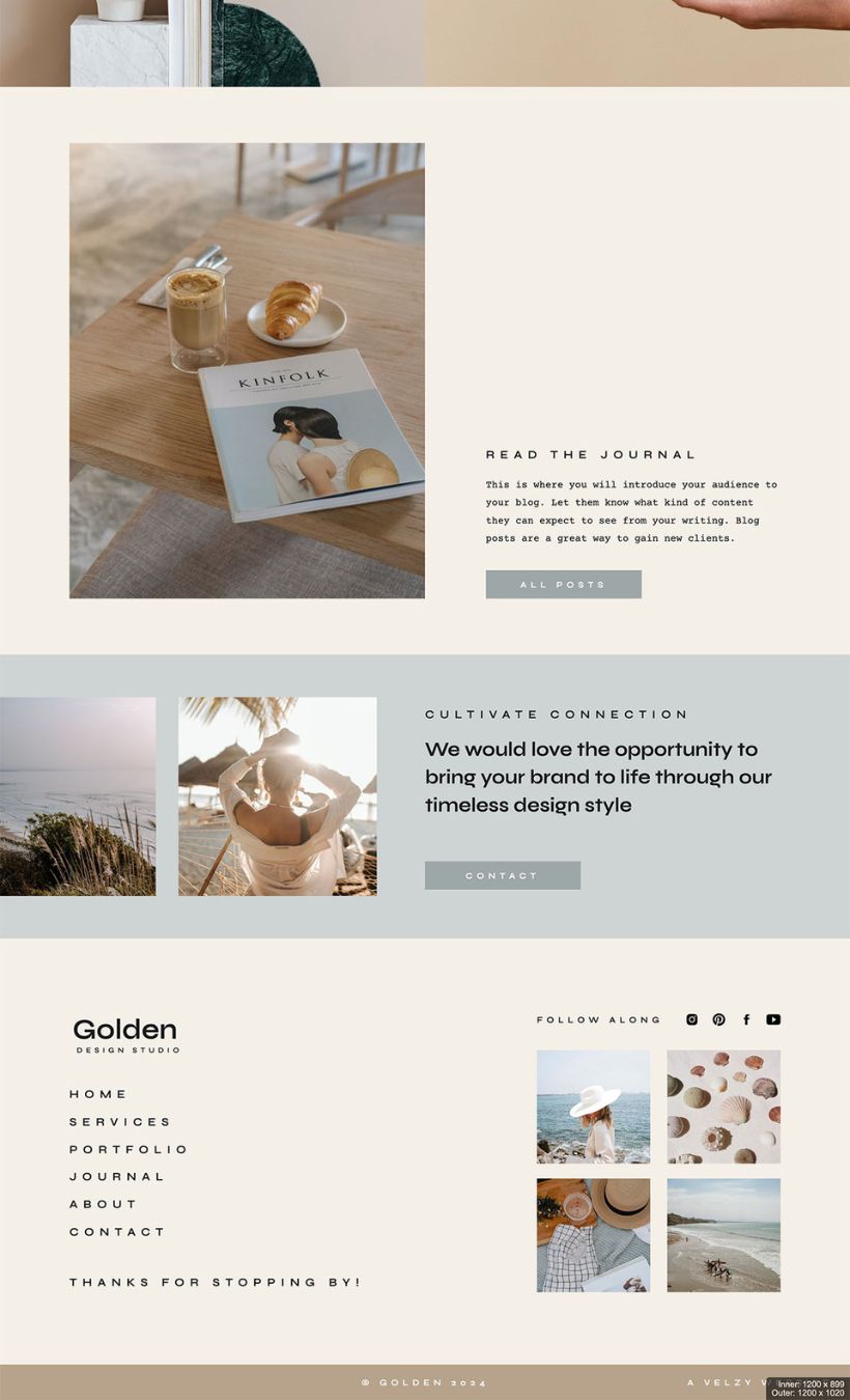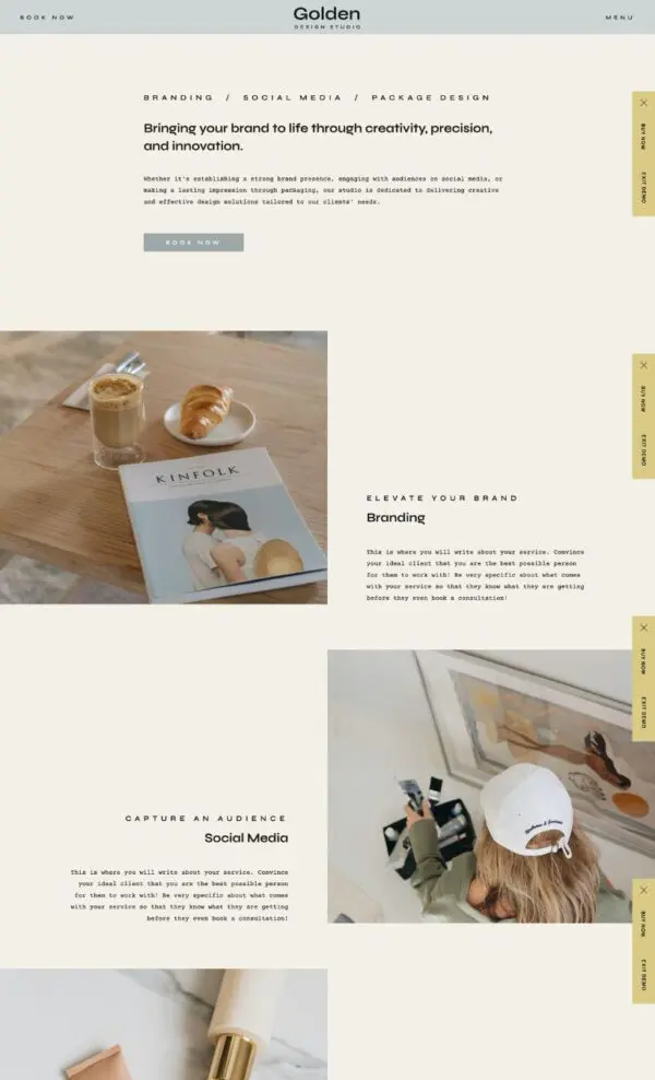 Golden was created with Graphic Designers in mind! It is the perfect portfolio website that will showcase your work in the best possible way! It also comes with a links page that it perfect to add to your social media for a ‘link in bio’.