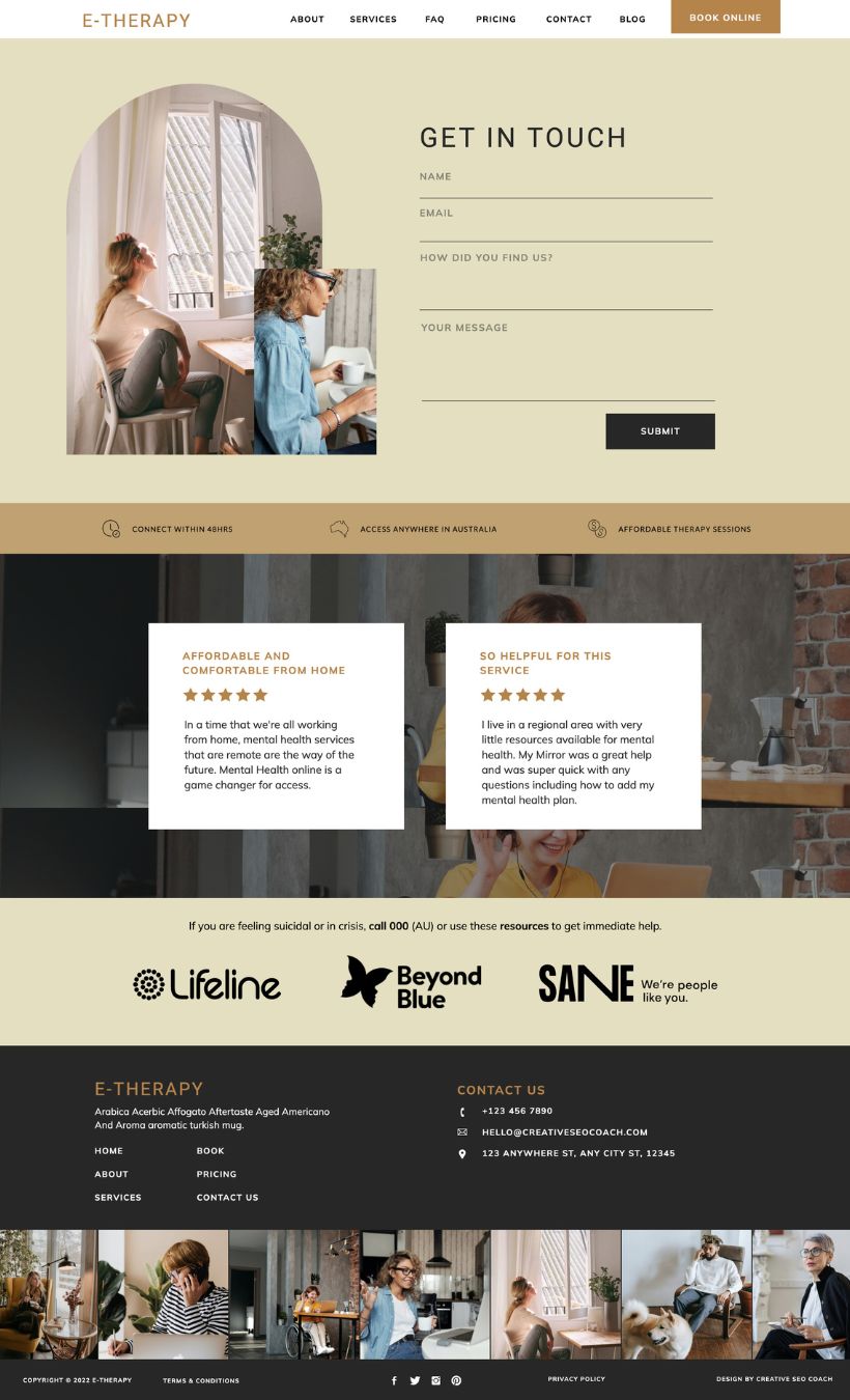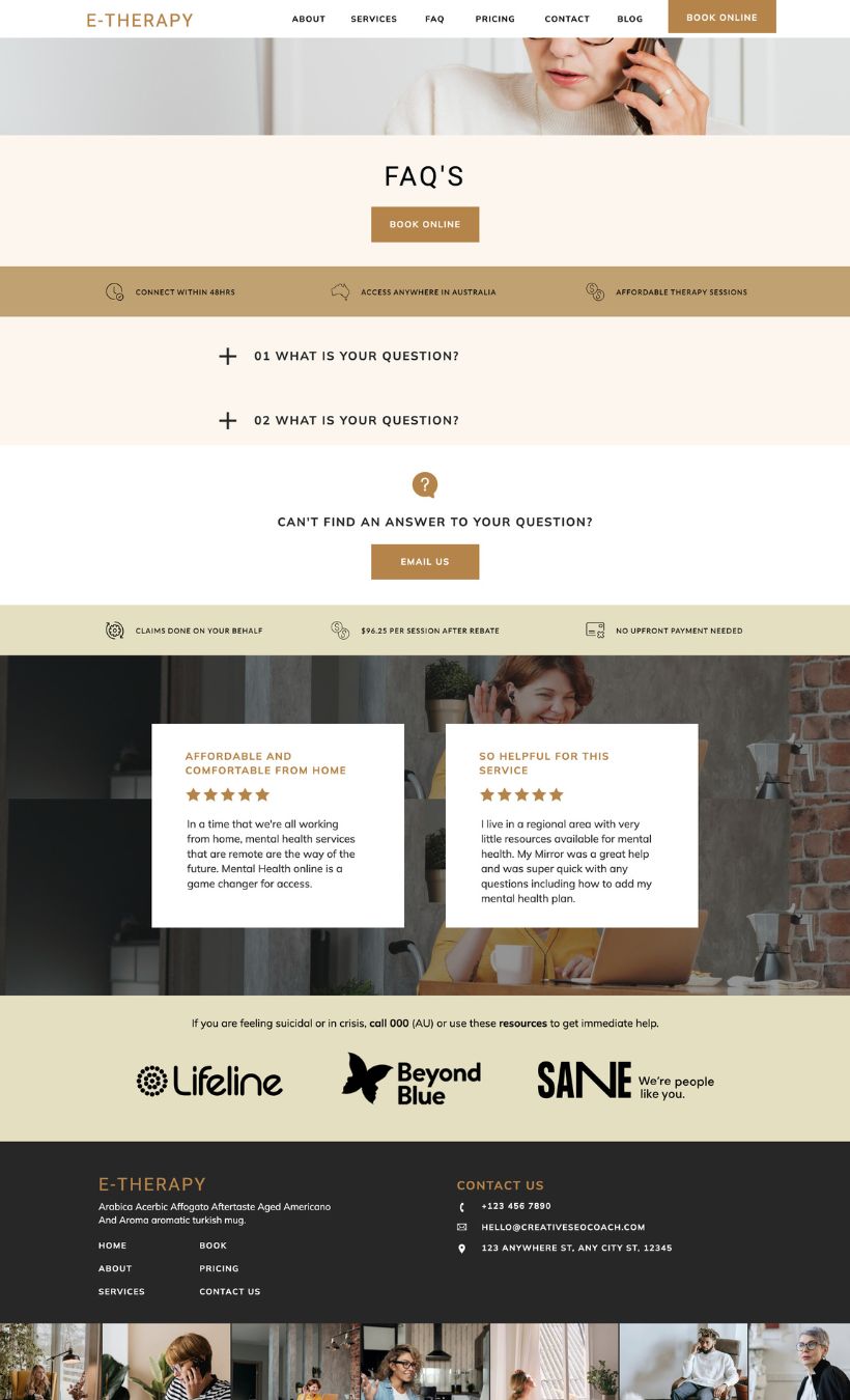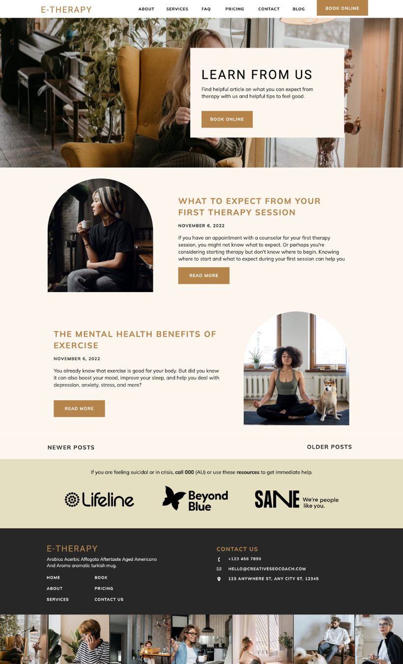 This warm, inviting, and easy-to-use website template is perfect for therapists, counselors, and other professional service providers looking to connect with clients online. Whether you offer mental health support, coaching, consulting, or wellness services, this template makes it simple to showcase your expertise, book appointments, and build trust with potential clients.