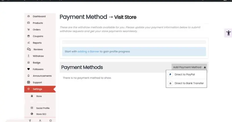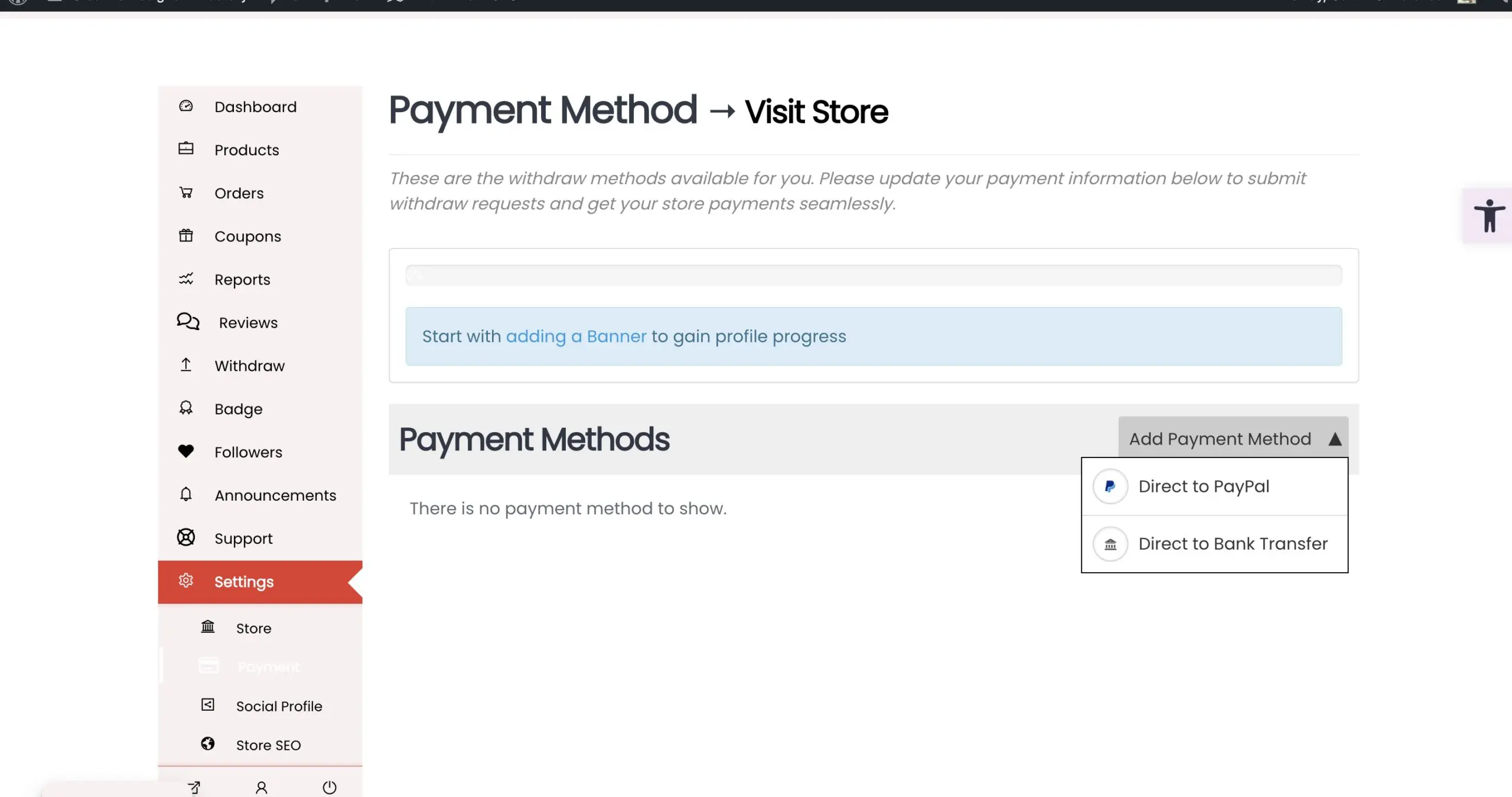 Set your preferred method under Vendor Dashboard > Settings > Payment.