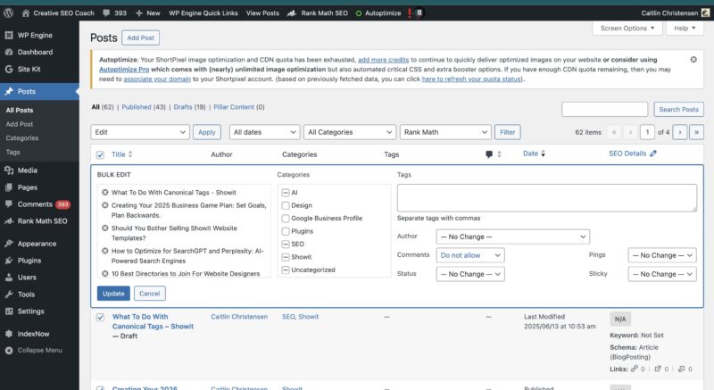 If you need help cleaning up your WordPress blog or want to optimize your site for Google and AI (because SEO still matters), Check out the Showit SEO Experts.