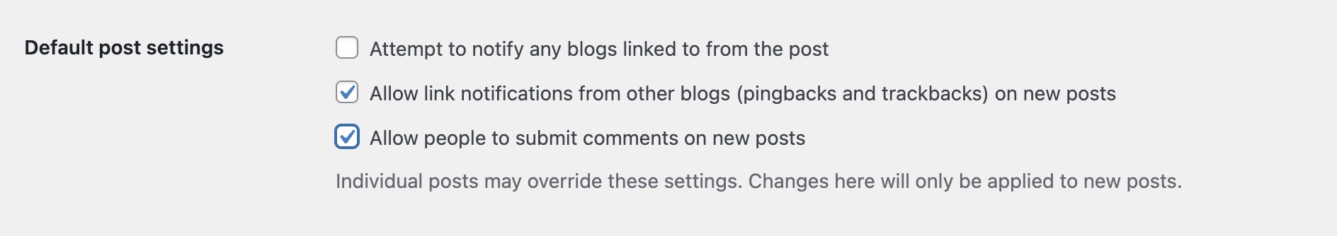 - ✅ “Allow link notifications from other blogs (pingbacks and trackbacks)”